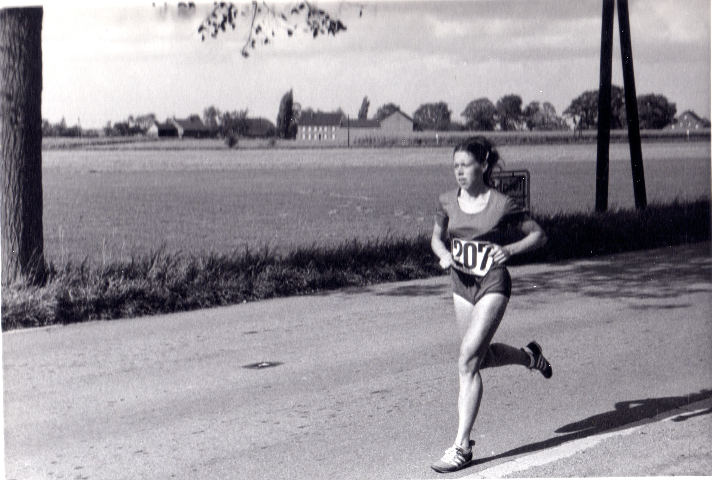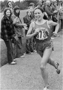on the first women’s international championship marathon in Waldniel, West Germany in the fall. There had been a US National Championship Marathon previously that I had not participated in due to a scheduling conflict, where I was needed for my club participation in another women’s championship team competition. When the time came to prepare for the Waldniel race, I was not chosen to be a member of the USA team, for having missed that national marathon. It didn’t really matter because our hosts in Germany counted me as part of the USA team anyway. Since I did not have a US uniform, I simply wore a plain red-shirt and shorts. I placed fifth overall and first American.