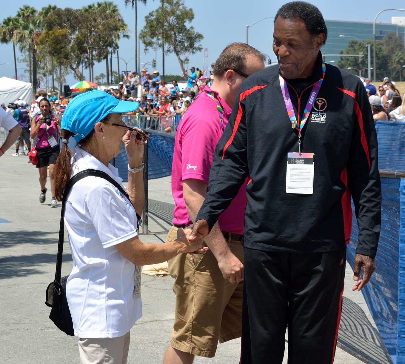 What a fitting moment, when stepping on stage for the lighting of the cauldron, the torchbearer was revealed to be none other than Rafer Johnson, who took this role, in this very place, 31 years ago at the 1984 Olympic Games. This 1960 Olympic gold medalist decathlete, the one who founded the Southern California Special Olympics. How great to see his presence at this World Games, on his doorstep. It certainly was a night “Out of this World.”