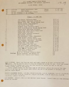 (Here are the lists of entrants for the Exhibition Races at the US Olympic Trials, thanks to Brian Holiday. Results can be found below, thanks to my late husband Tom Sturak’s files, who saved everything.)