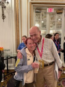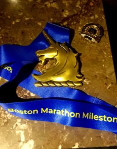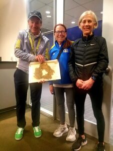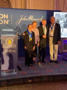 This evening, the BAA held their Welcome Reception, where Jon and I were honored and presented our 50th Anniversary Milestone Medallions. We were surrounded by our friends, which now included Julie McKinney (my roommate), and many Boston champions.