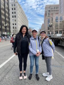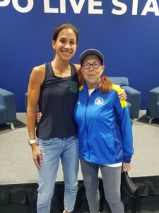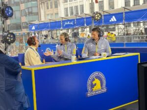 In the afternoon, the wonderful journalist and moderator, Barbara Huebner interviewed both Jon and me on the main stage at the Boston Marathon Expo. Fortunately for me, my runner, Adan Acevedo recorded the whole thing, attached here: Jon and Jaqi Expo Interview