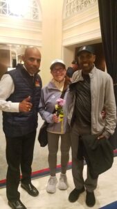 Saturday was quite the long day, capped by the BAA Gives Back Fundraiser featuring David Ortiz, “Big Papi,” and Adrianne Haslet, later that evening. This was the first opportunity Adrianne and I had the chance to meet, talk, and get to know one another. Now, I feel as though we’ve been friends forever. What an inspiration she is in so many ways, to so many people. All my friends in sport are highly jealous I got my picture taken with Big Papi. I am fortunate.