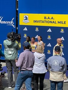 SATURDAY 4/15: Following the morning’s 5K road race, there were terrific line-ups for the street mile runs. The grandstands were packed, and the weather was perfect. Such excitement!