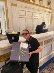 THURSDAY 4/13: Arrived Logan Airport, met up with Lorie Moreno-Roch and caught a cab to our hotel, Fairmont Copley. It was like Queen-for-a-Day all weekend, from the moment we arrived. Flowers and gifts were waiting for me!